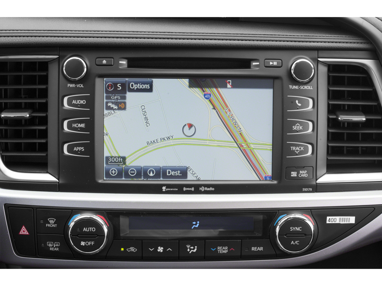 - Radio: Entune Premium Audio w/Nav & App Suite -inc: the Entune Multimedia Bundle (8" high resolution touch-screen w/split screen display, AM/FM CD player, MP3/WMA playback capability, 6 speakers, auxiliary audio jack, USB 2.0 port w/iPod connectivity and control, advanced voice recognition, hands-free phone capability, phone book access and music streaming via Bluetooth wireless technology), Siri Eyes Free, Entune App Suite, Intelligent Touch controls, SiriusXM Satellite Radio w/3-month complimentary SirusXM All Access trial, HD Radio, HD Radio predictive traffic and Doppler weather overlay, AM/FM cache radio, Gracenotes album cover art and integrated back up camera display w/projected path
